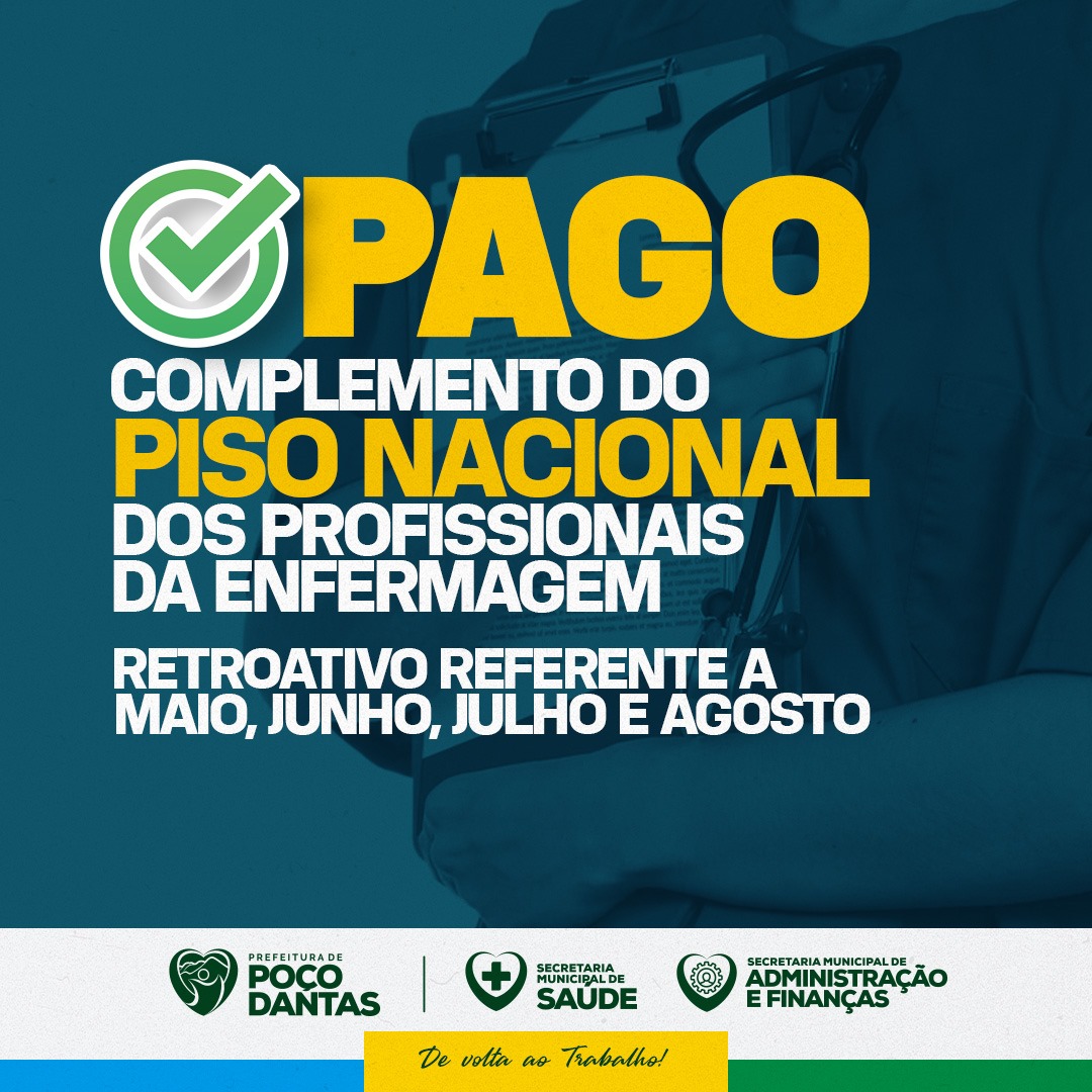 Prefeito Itamar Moreira anuncia pagamento do piso nacional da enfermagem aos profissionais de Poço Dantas