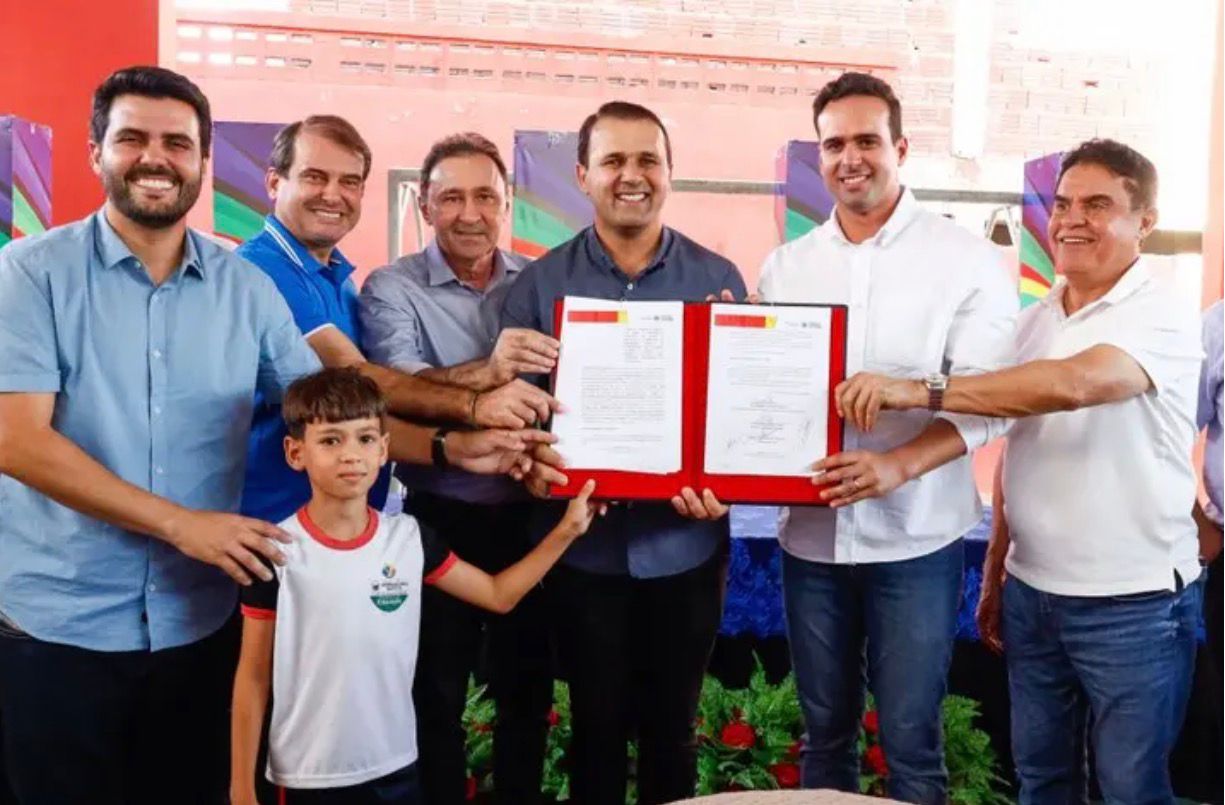 Espedito Filho recebe governador em exercício, Lucas Ribeiro, para assinatura de convênio e visita a obras da educação em Triunfo