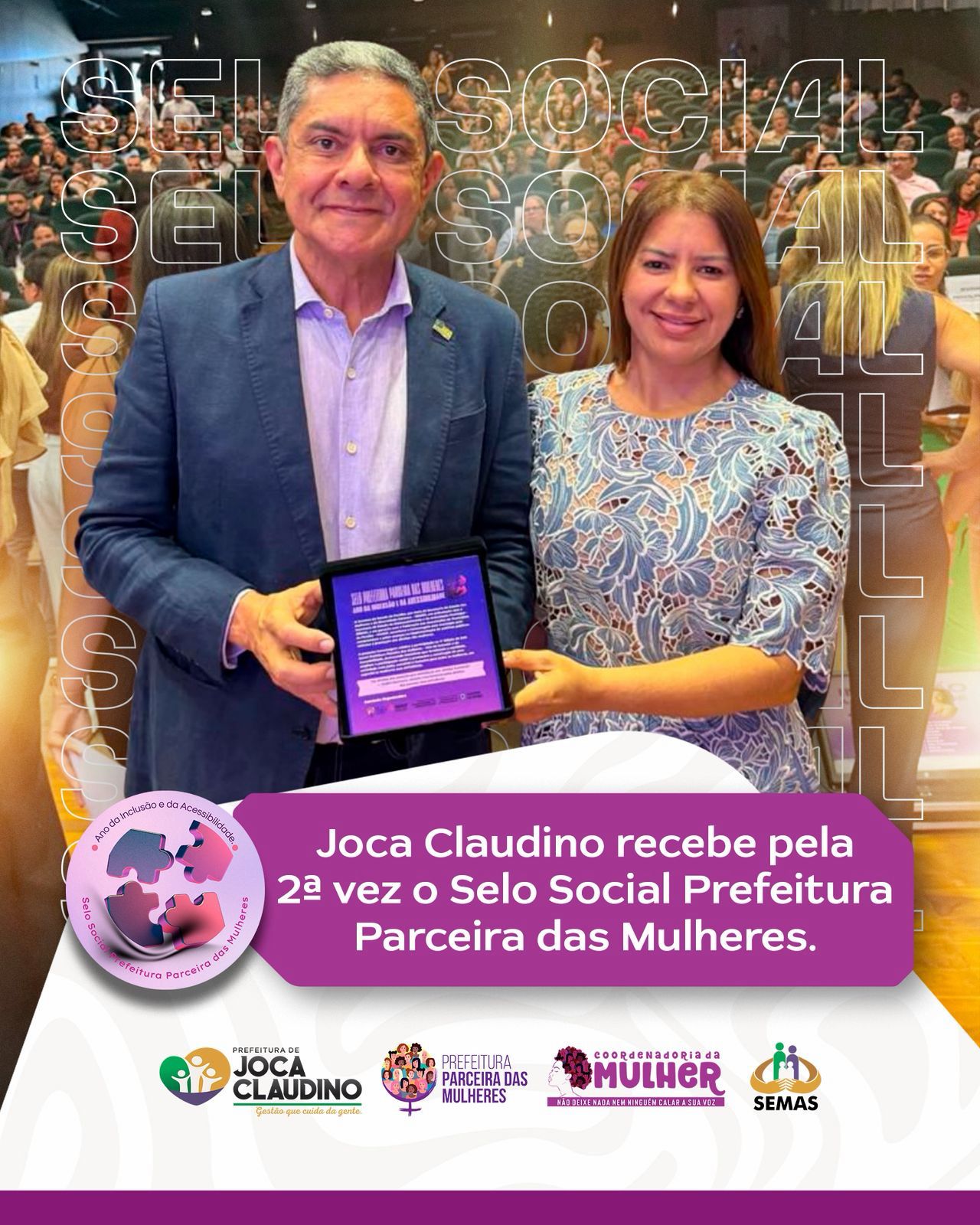 Joca Claudino recebe pela 2ª vez o Selo de Prefeitura Parceira das Mulheres