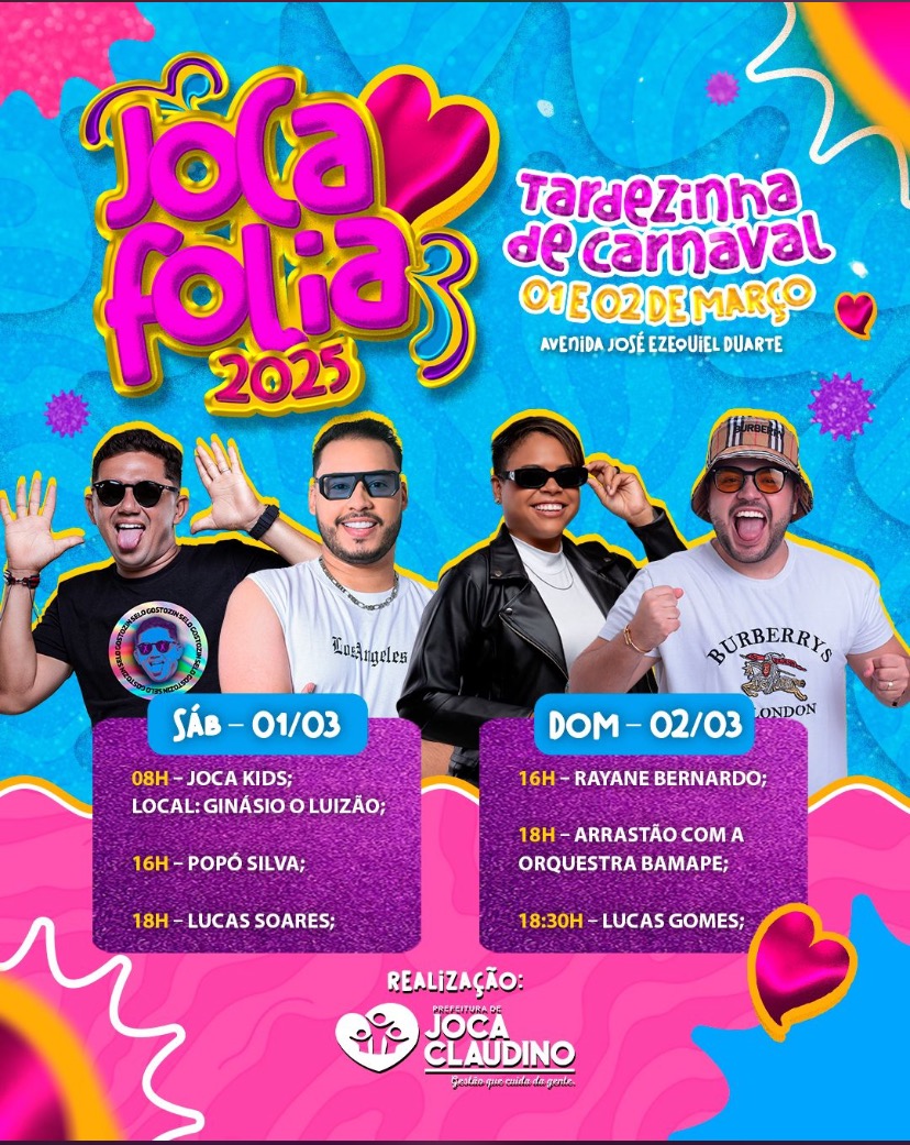 Exclusivo: Divulgada a Programação Oficial do Joca Folia 2025 em Joca Claudino