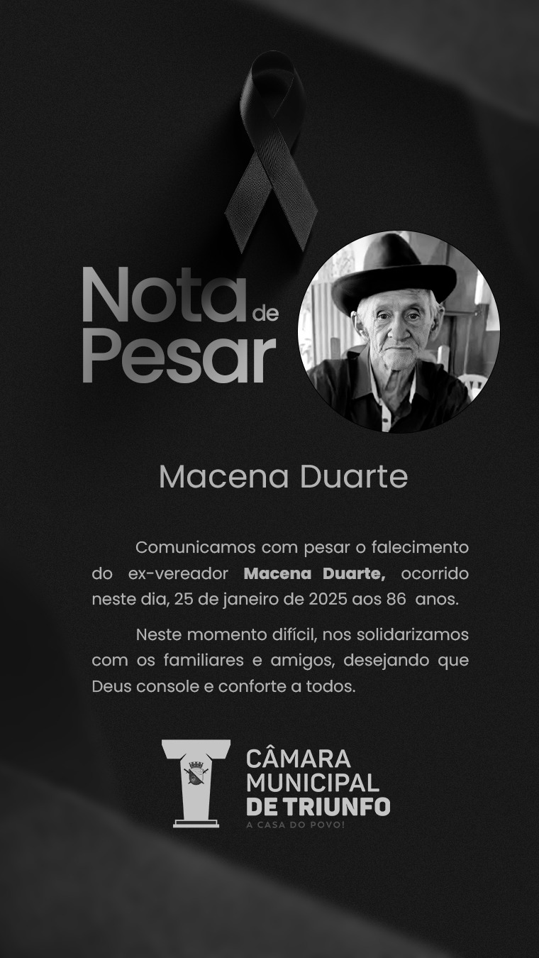 Câmara Municipal de Triunfo emite nota de pesar pelo falecimento do ex-vereador Macena Duarte
