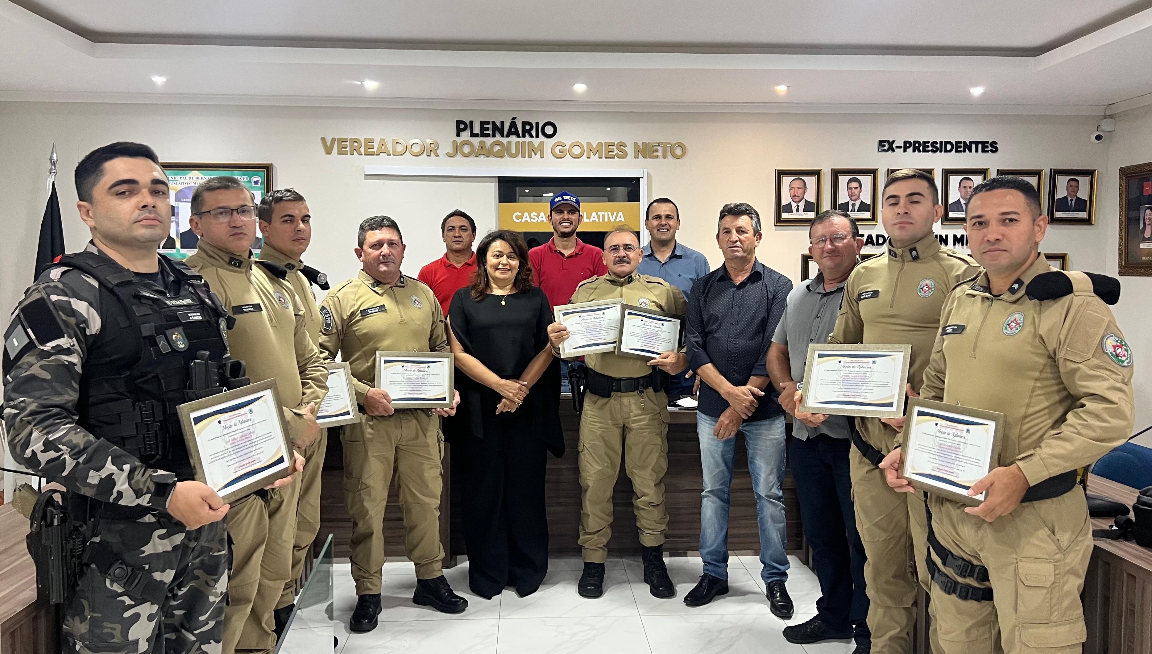Policiais Militares da região de Uiraúna recebem moção de aplausos na Câmara de Bernardino Batista